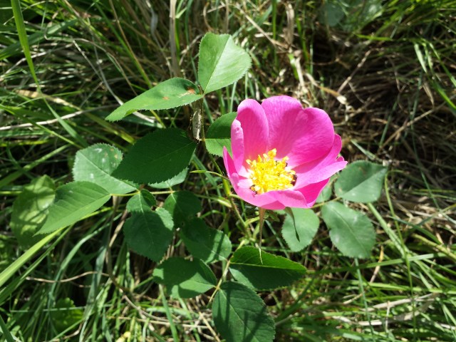 De coloris verts clairs, ses feuilles sont reparties en cinq et sept folioles dentées et poilues sur le revers. Ses fleurs, par contre, se distinguent par ses énormes corolles simples, délicatement parfumées. De rose pâle au rose foncé, avec des anthères jaunes, les fleurs de cet arbuste savent se mettre en valeur et ne manqueront point d’apporter un certain cachet à votre jardin.