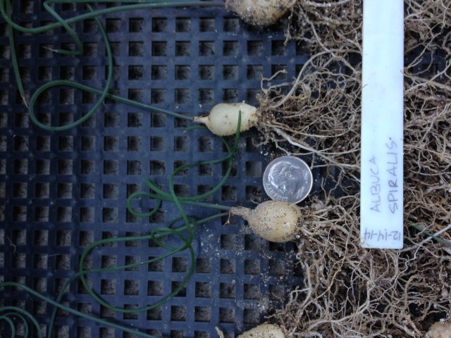 Malgré qu’elle ne supporte pas entièrement la période hivernale, c’est pourtant durant cette période qu’elle commence à pousser pour fleurir entièrement au printemps. Le bulbe de l’Albuca Spiralis est entièrement vert et ressemble à s’y méprendre à un oignon.
