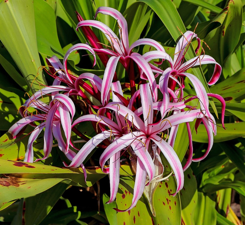 Le crinul asiaticum : cette espèce est réputée comme la plus vénéneuse. Toutes les parties de son corps peuvent tuer une fois ingérées et selon la tolérance de la personne ou de l’animal. A la différence des autres espèces, le crinum asiaticum possède des feuilles dressées en ruban. Les fleurs sont assez nombreuses et ressemblent à un lis dotées d’étamines pourpres. L’avantage avec cette plante c’est qu’elle peut fleurir toute l’année avec le climat adapté.