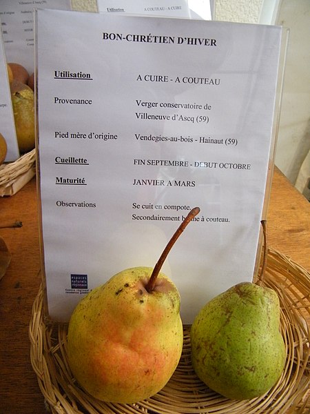 Aussi connue sous le nom de Bon-Chrétien, cette variété de poirier se récolte vers la fin de l’été. C’est l’une des espèces les plus appréciées pour son goût et son aspect assez juteux en bouche.